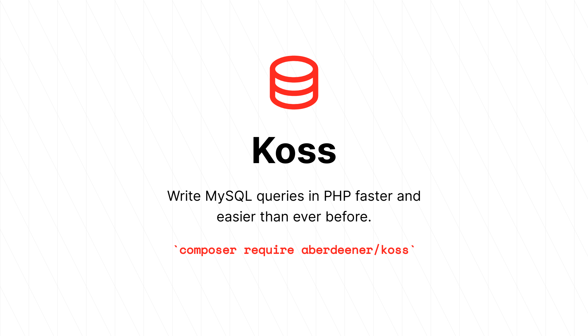 All assuming you have autoloaded Koss.php and created a new instance of it with your database credentials.