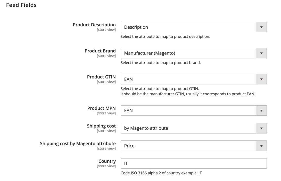 Specifies main fields for the feed. Some fields will be inherited form the GoogleShopping module and will not be used by AccelaSearch