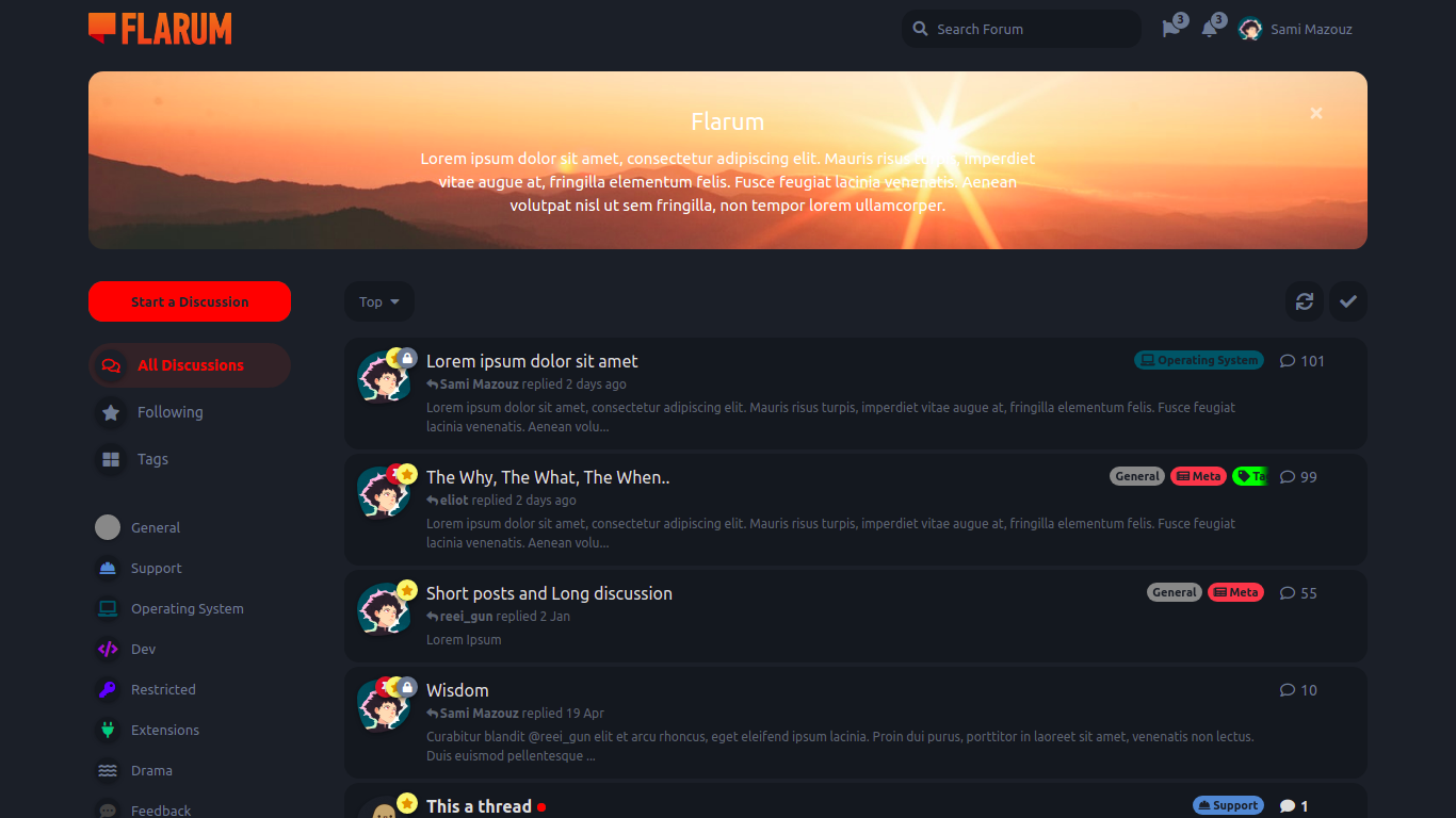 The weird Flarum theme made with potatoes as fuel, by Afrux.