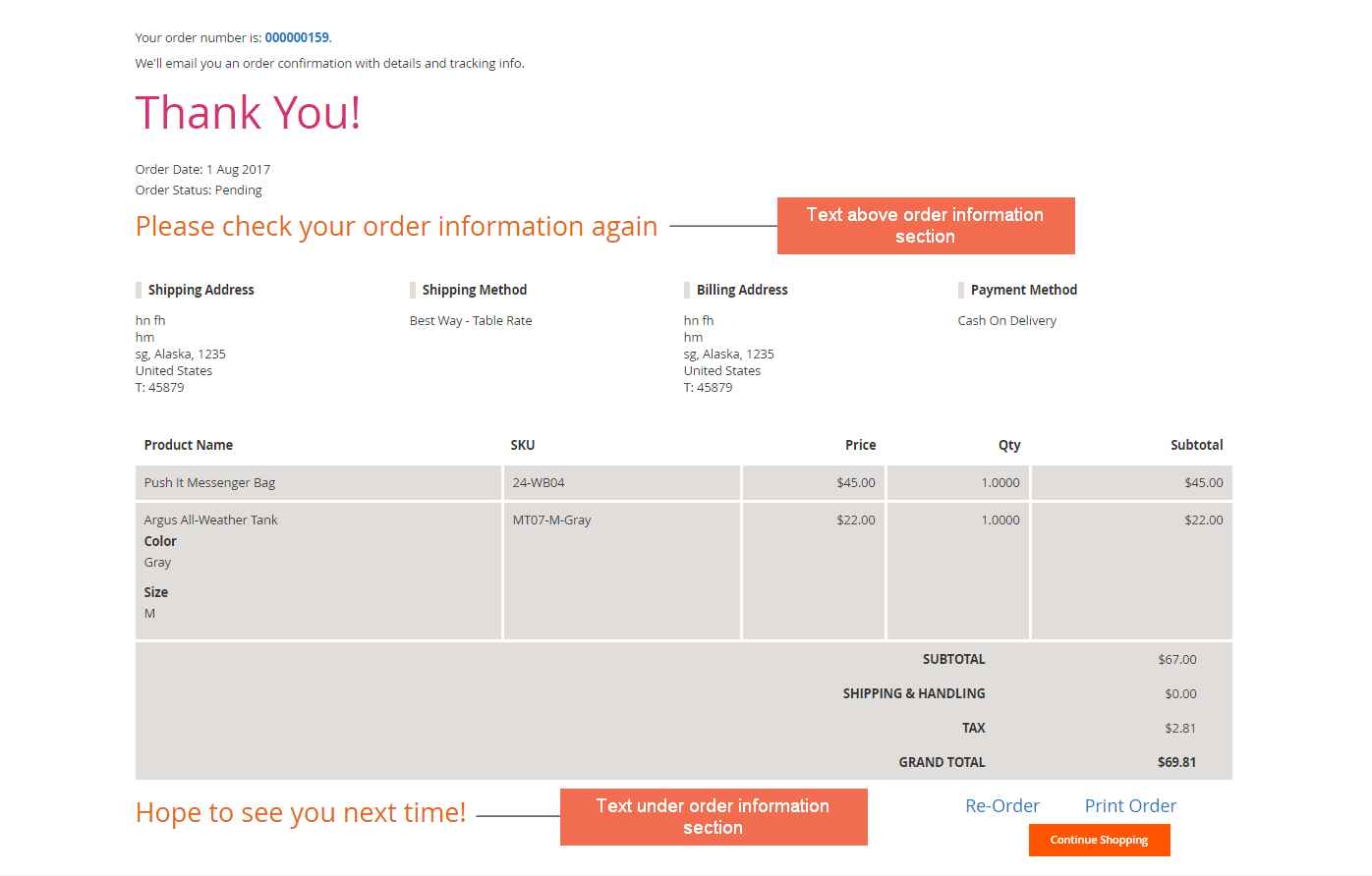 Add text above and below order detail