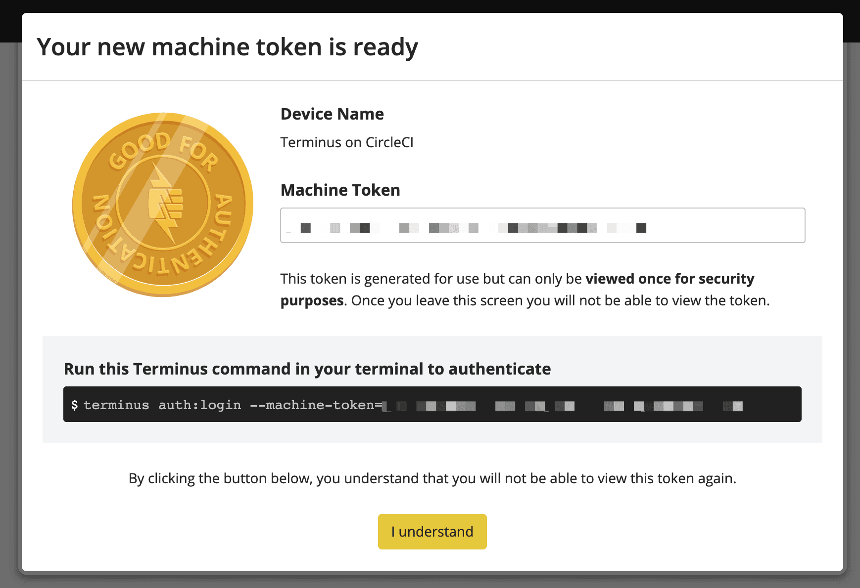 The TERMINUS_TOKEN environment variable is the token used by terminus to