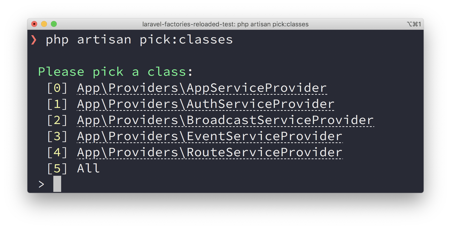 <?php use Illuminate\Console\Command; class MyLaravelCommand extends Command { use PicksClasses; //... }
