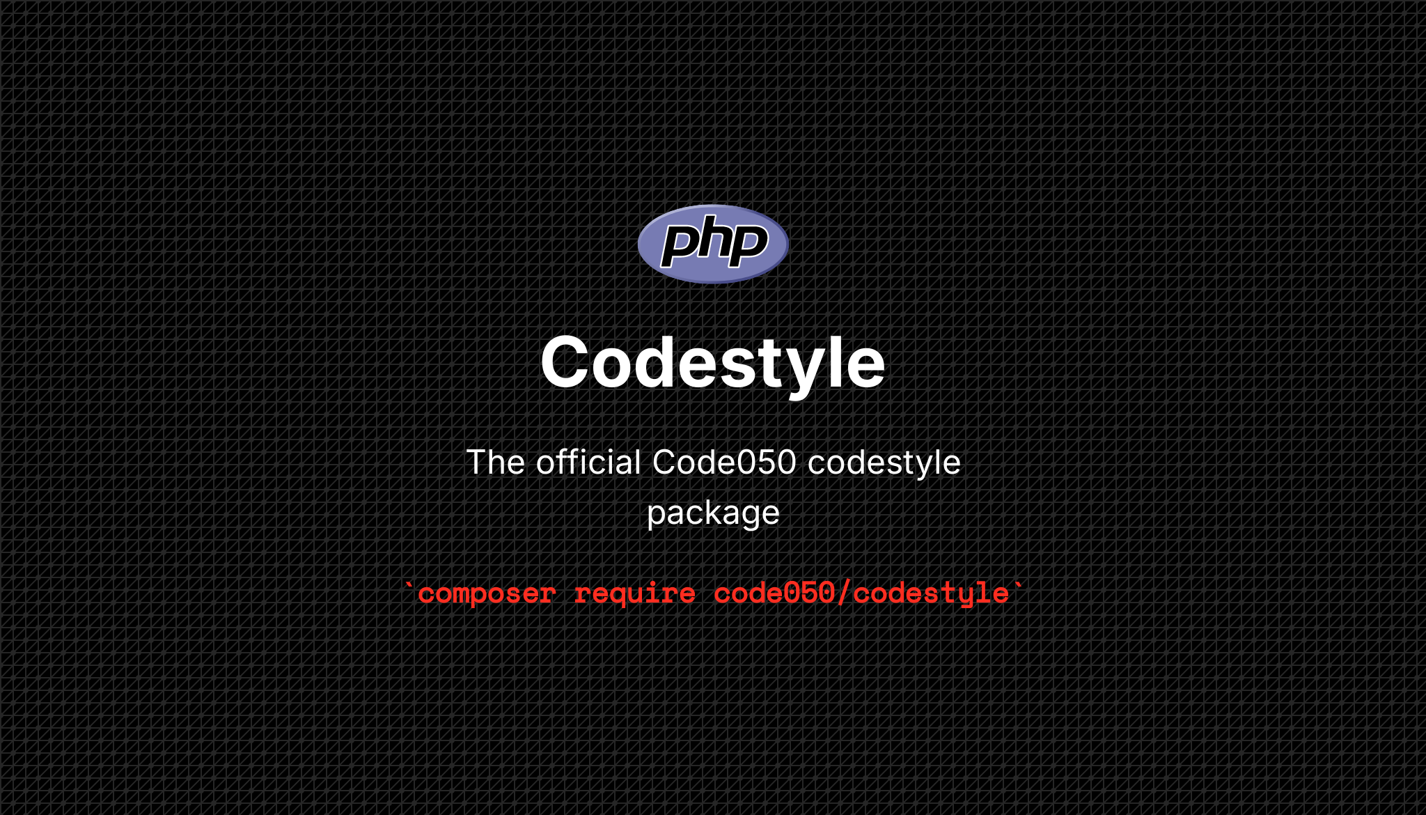 The official Code050 codestyle package, containing a guideline, a phpcs configuration and a phpstan configuration.