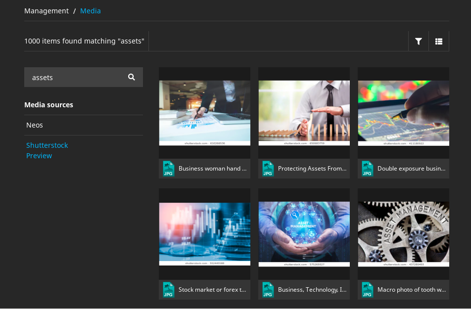 This package provides an asset source for shutterstock.com. It is limited to preview images at the moment.