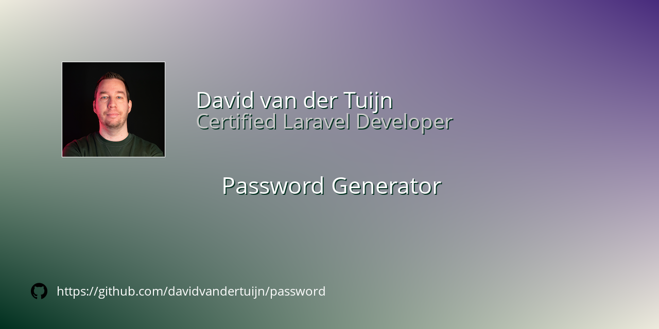 Password::generate( 8, // Password length. true, // Include lowercase characters. true, // Include uppercase characters. true, // Include numbers. true, // Include symbols. true, // Exclude similar characters. true // Exclude ambiguous characters. );