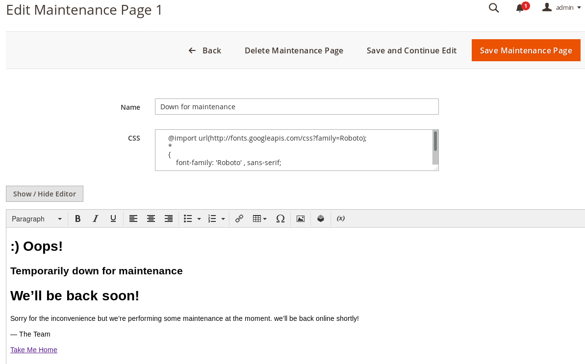 Extension to add and configure maintenance or coming soon style landing page for store front. Can be set on globally or per a multi-site store basis.