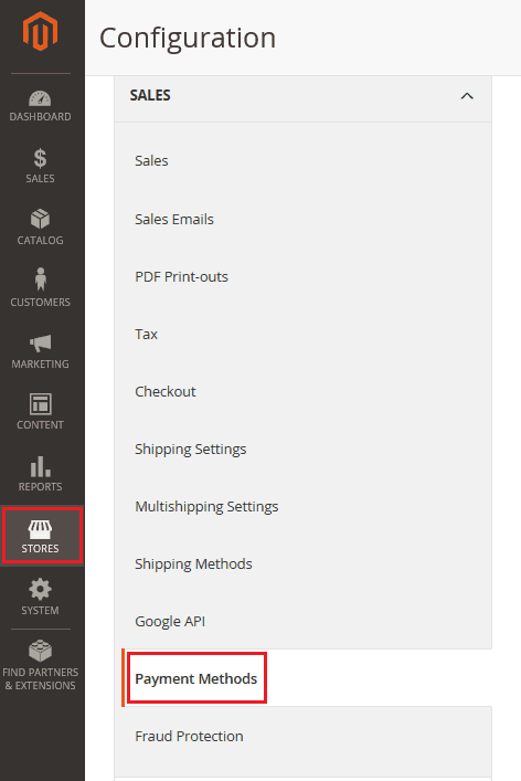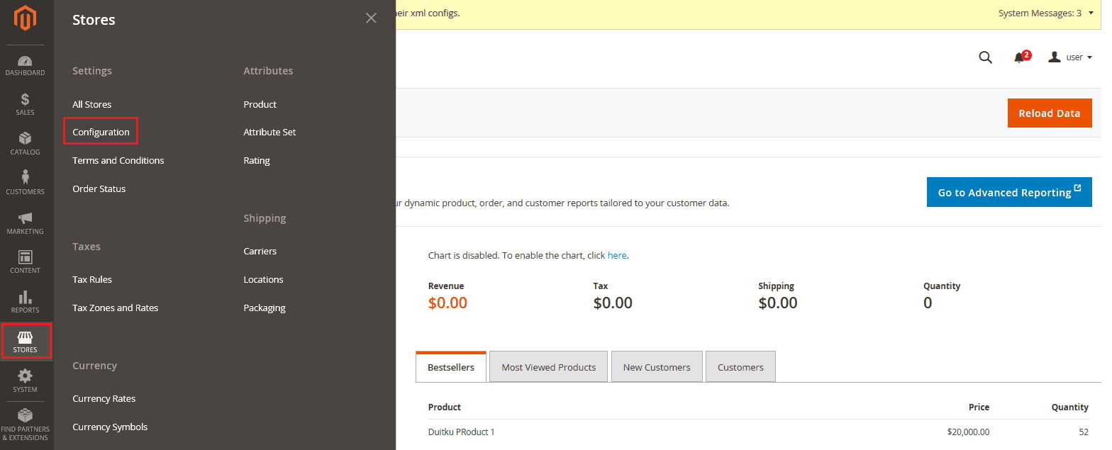 In the left navigation bar, go to Stores(1) -> Configuration(2).