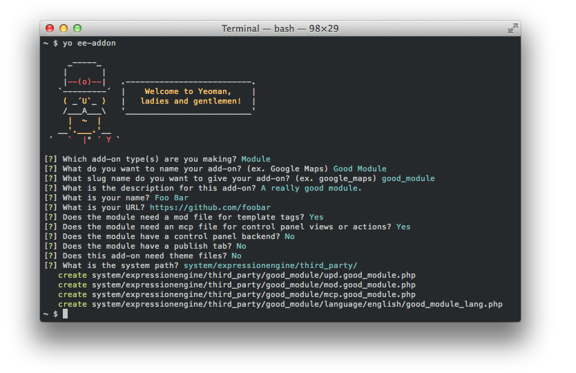 An ExpressionEngine Add-On generator for Yeoman. Capable of building modules, plugins, extensions, accessories and fieldtypes.