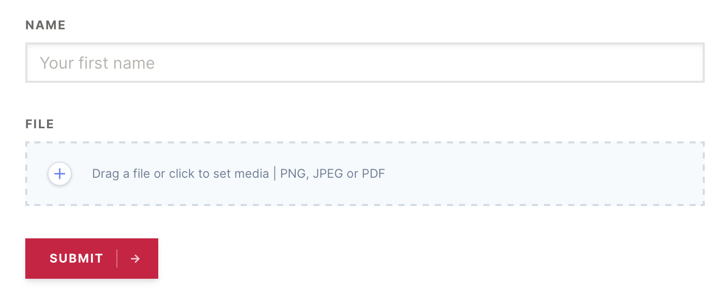 The attachment component can upload one or more files with little or no extra information. It's is a lightweight solution for small bits of UI like avatar fields or message attachments.