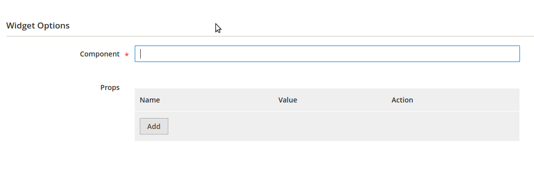 on the Component field. Then, click on the Add button on the form below. This component supports a single prop