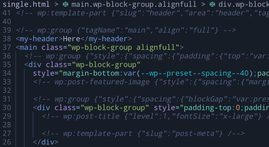 // custom-blocks/my-header.js ( function( blocks, element, blockEditor ) { let el = element.createElement; let RichText = blockEditor.RichText; blocks.registerBlockType( 'enhance-plugin/my-header-block', { title: 'My Header', icon: 'heading', category: 'layout', attributes: { content: { type: 'string', source: 'html', selector: 'my-header', }, }, edit: function( props ) { var content = props.attributes.content; function onChangeContent( newContent ) { props.setAttributes( { content: newContent } ); } return el( RichText, { tagName: 'h1', className: 'my-custom-header', style: { color: 'red' }, value: content, onChange: onChangeContent, } ); }, // Save should be the authored/non-expanded html form of my-header (i.e. `<my-header>Hello World</my-header>`) save: function( props ) { const htmlContent = props.attributes.content return el( 'my-header', { dangerouslySetInnerHTML: { __html: htmlContent } } , null ); }, } ); } )( window.wp.blocks, window.wp.element, window.wp.blockEditor );