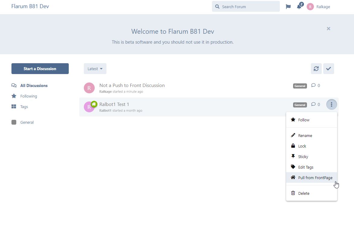 A Flarum extension. Push discussions to the front of your Flarum forum index!
