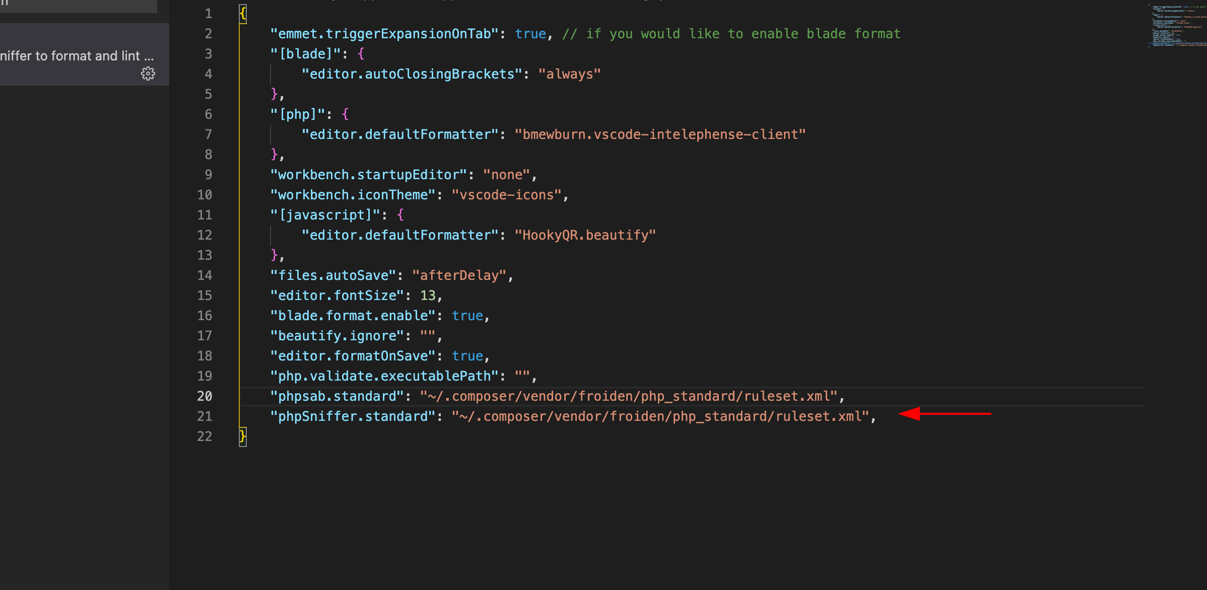 "phpSniffer.standard": "~/.composer/vendor/froiden/php_standard/ruleset.xml",