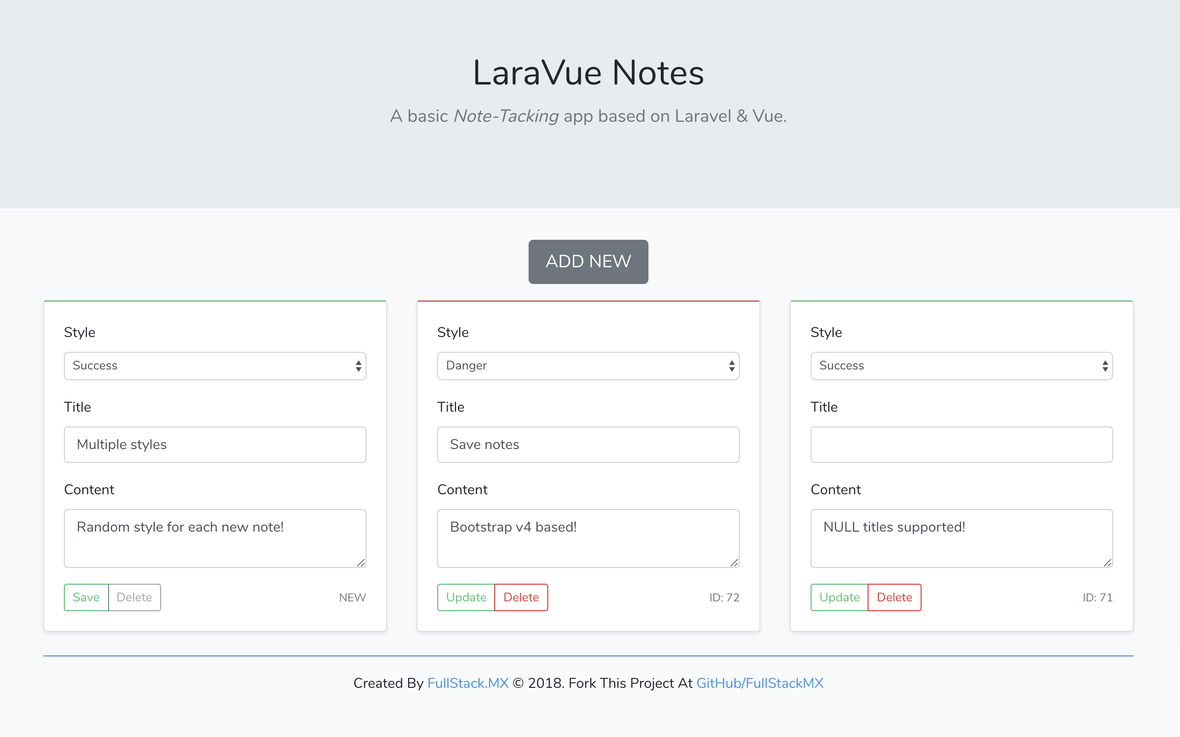 A public note-taking application based on Laravel 5.7, Vue 2 and Bootstrap 4.