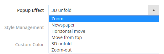 Admin can choose one of nice effects as you need by block in Popup Effect field.