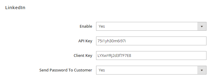 If customers login via LinkedIn, you can send email notification about their account’s password on your site or not, that depends on setting in Send Password to Customer field.