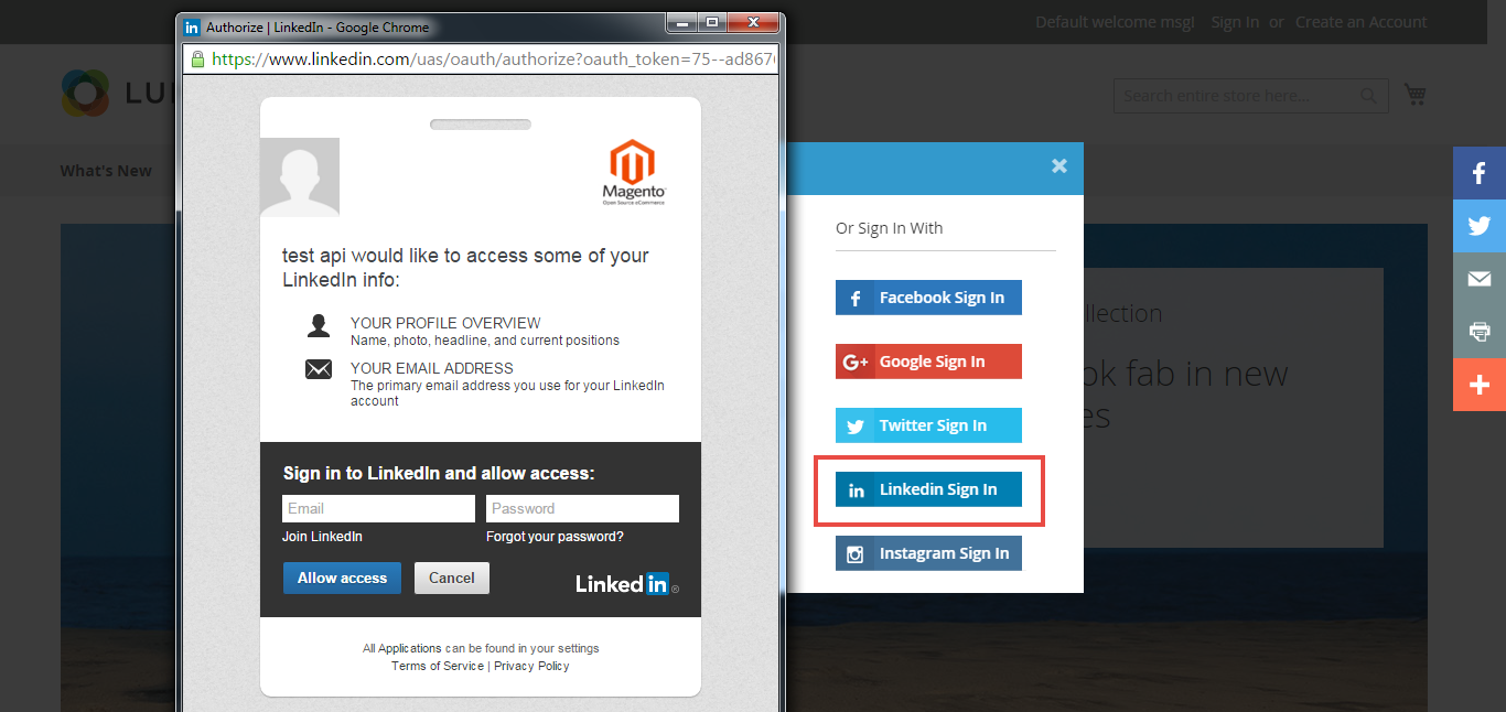 The login box will display as popup checkbox after clicking on LinkedIn Sign In button.