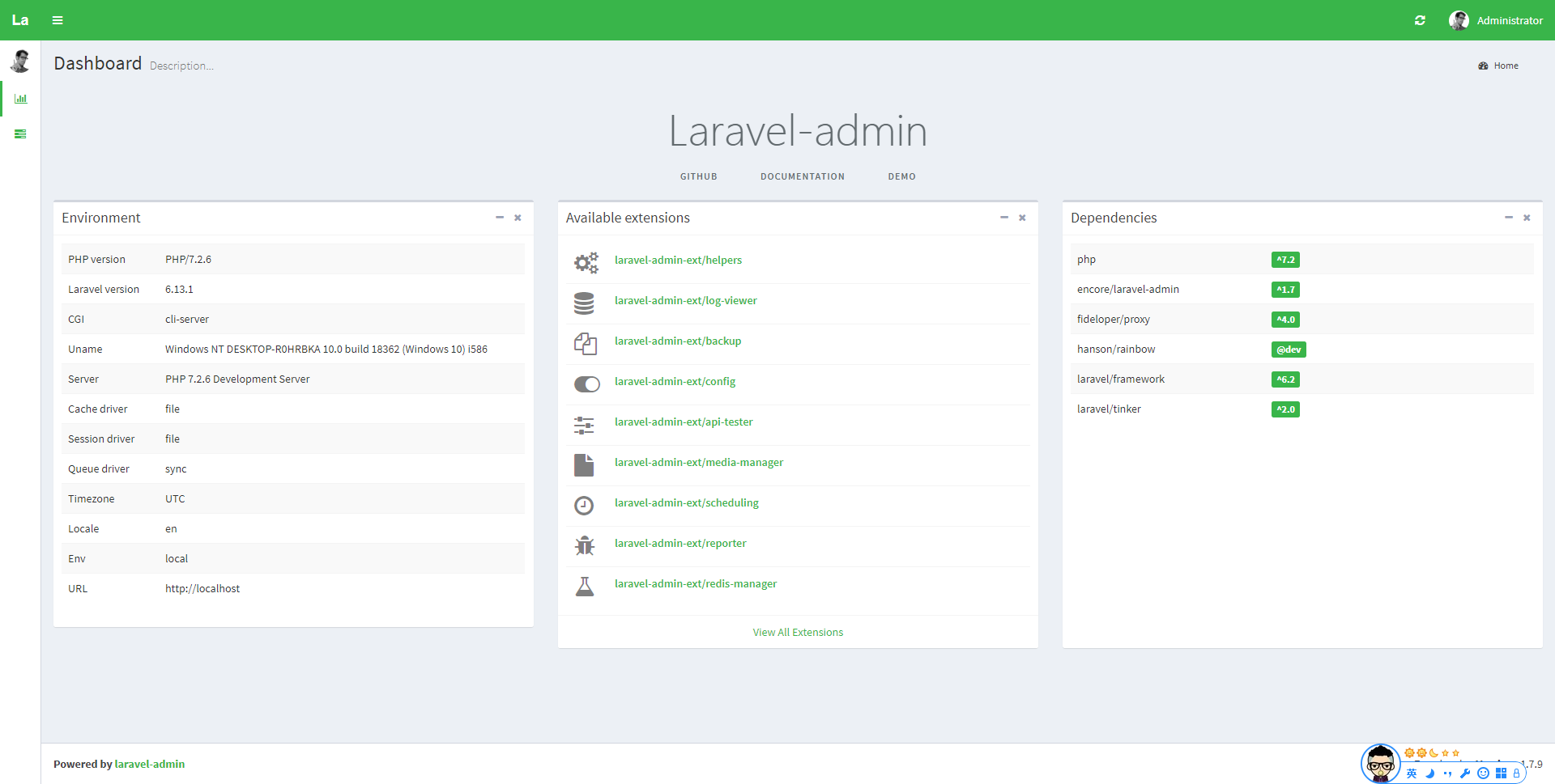 - encore/laravel-admin: ^1.7