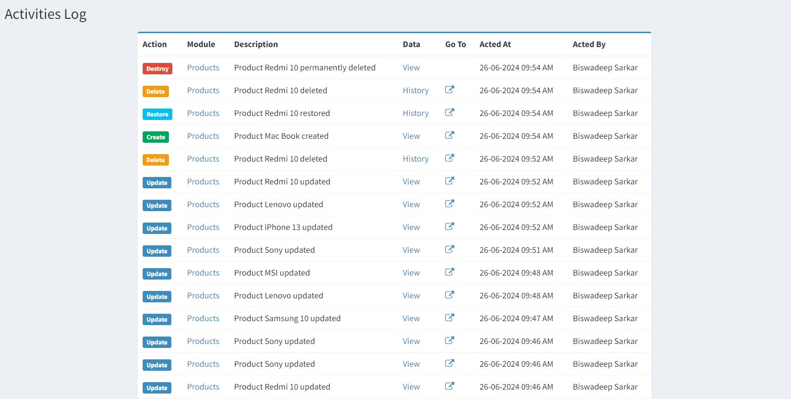 - FormTool Activities: Will store all the activities like what item was created, updated, duplicated, deleted, restored and destroyed permanently.