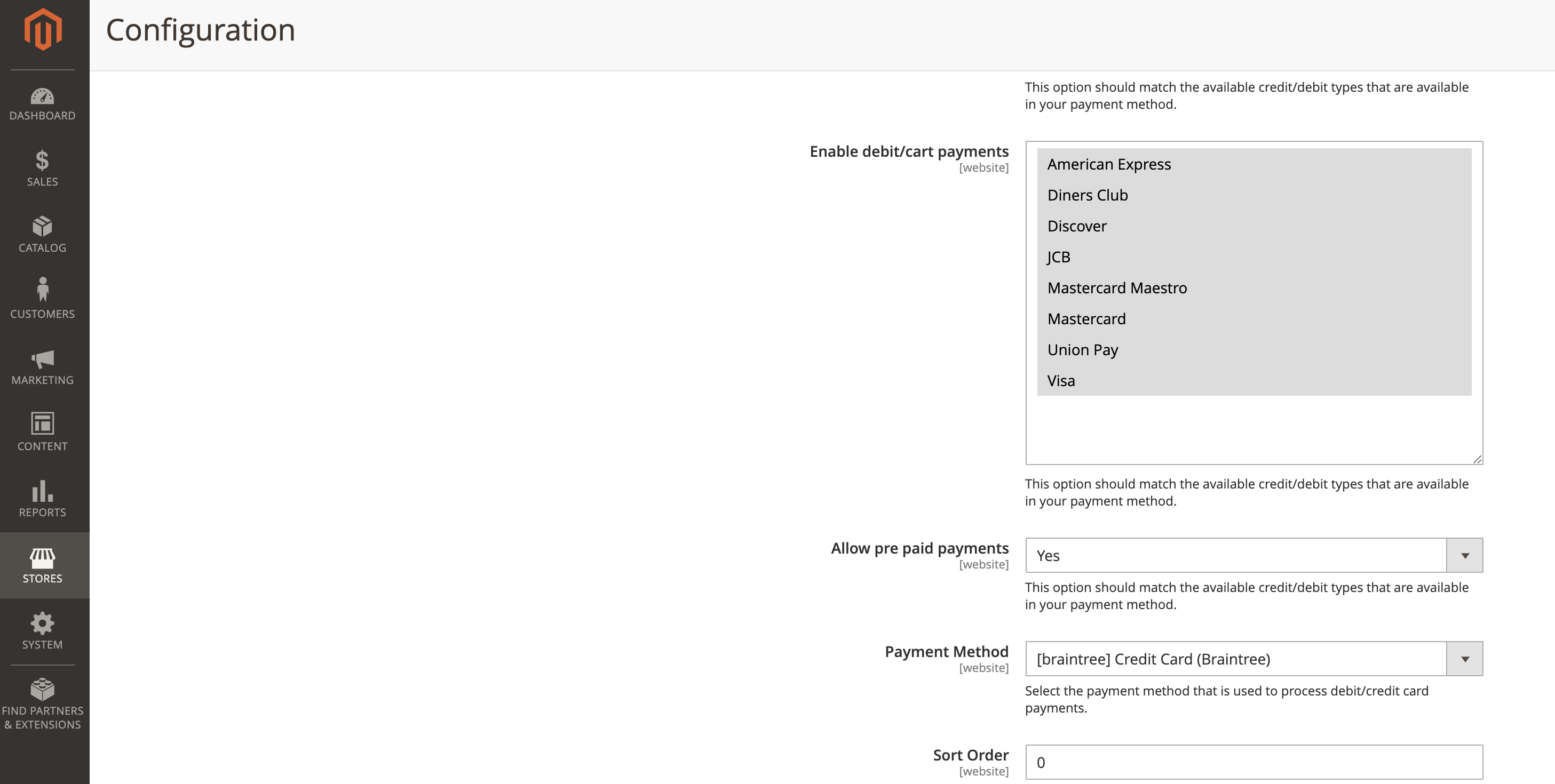 We also have options to setup the available card flags and the card types (debit, credit, or both).