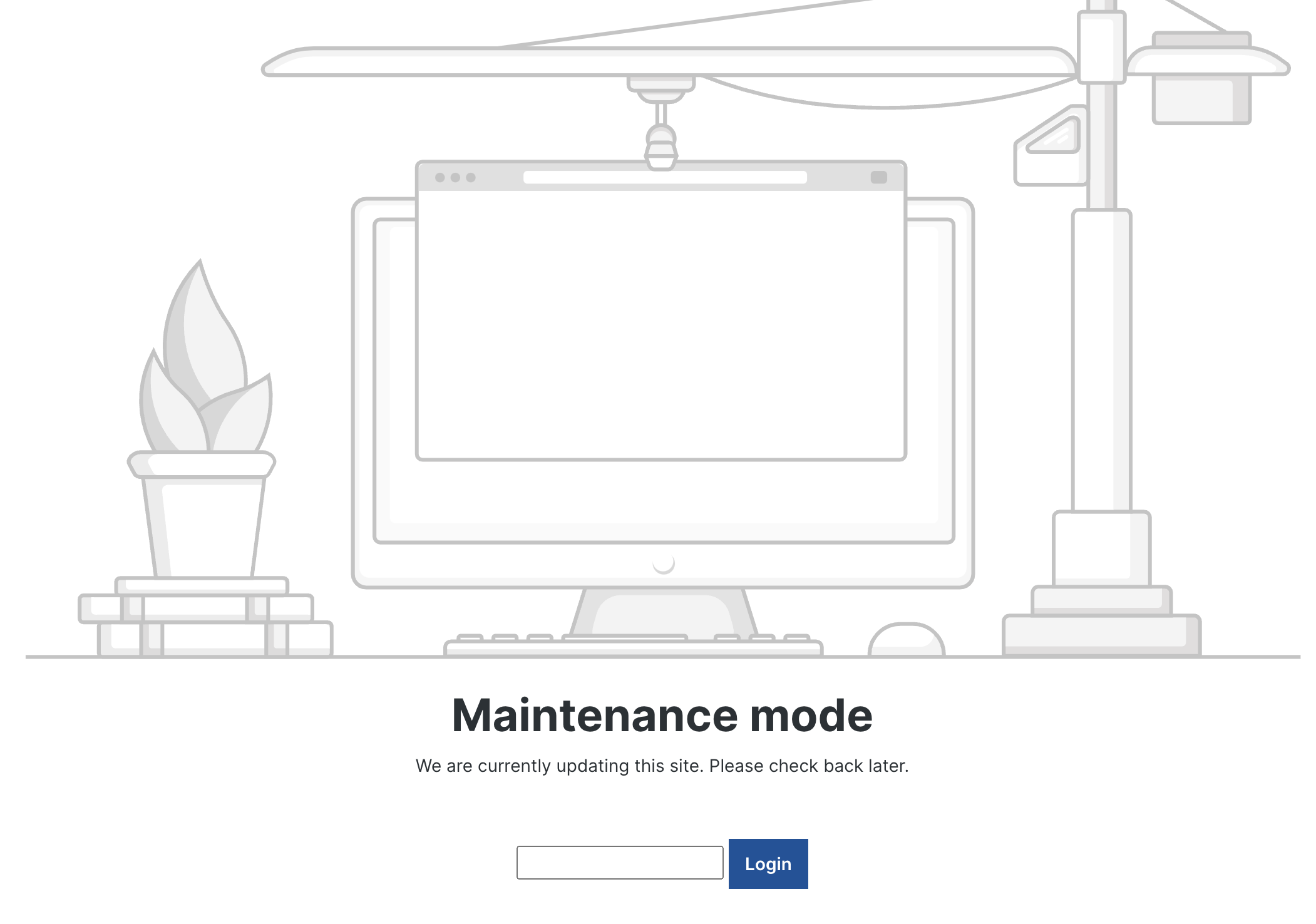 When maintenance mode is enabled, you can log-in with the password from within the maintenance page.