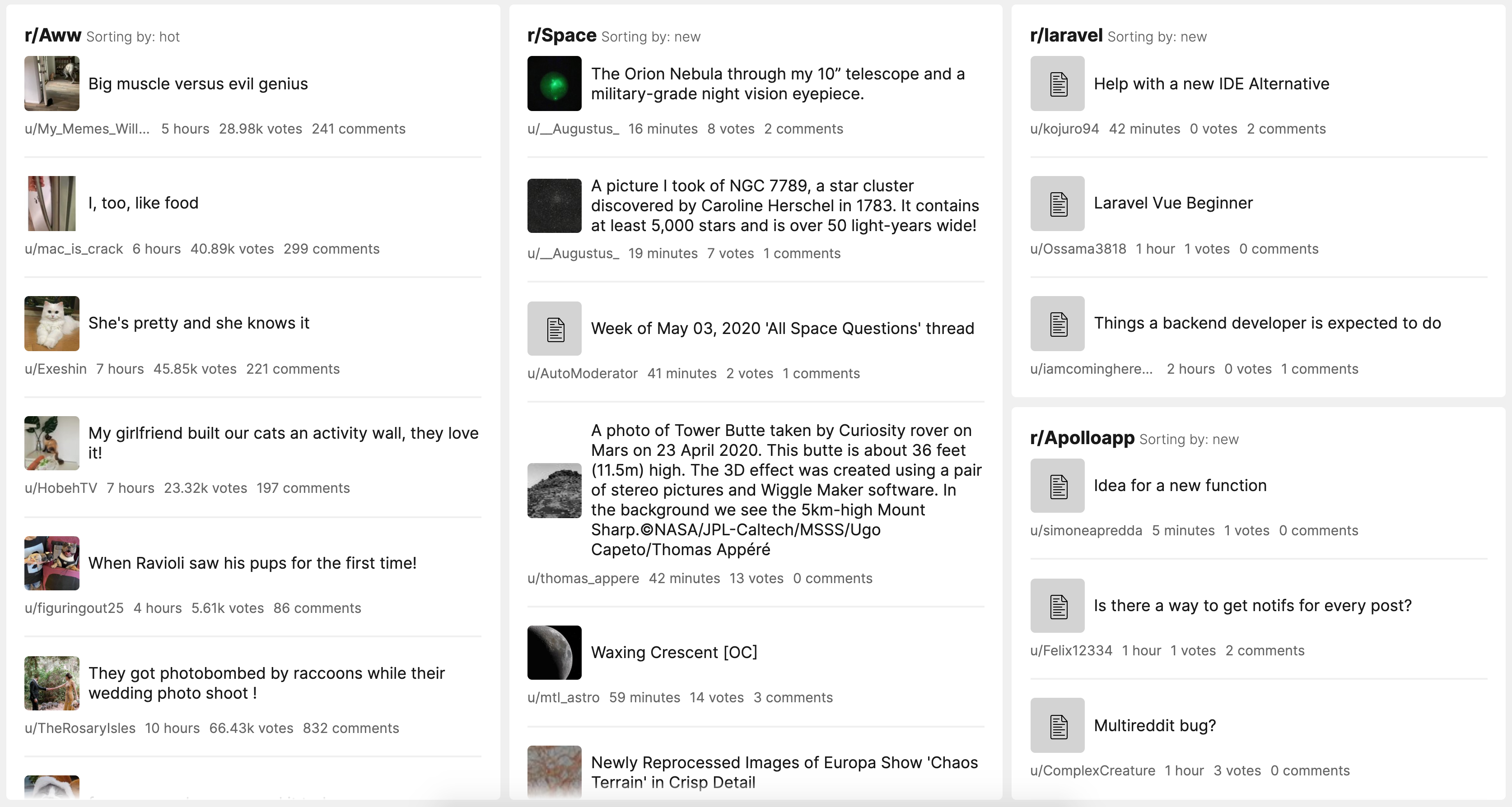 <x-dashboard> <livewire:reddit-tile position="a1:a4" configuration-name="default" title="r/Aww"/> </x-dashboard>