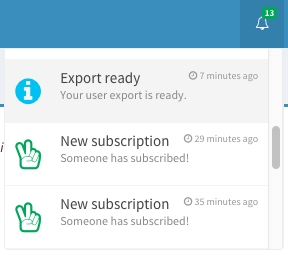 $this->notification->push('New subscription', 'Someone has subscribed!', 'fa fa-hand-peace-o text-green', route('admin.user.user.index'));