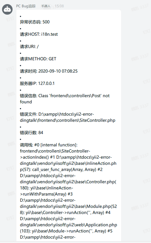 基于Yii2错误处理的钉钉群机器人Webhook通知
