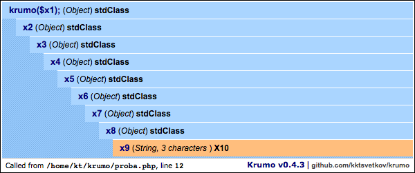 Krumo is a debugging tool, which displays structured information about any PHP variable. It is a nice replacement for print_r() or var_dump() which are used by a lot of PHP developers.