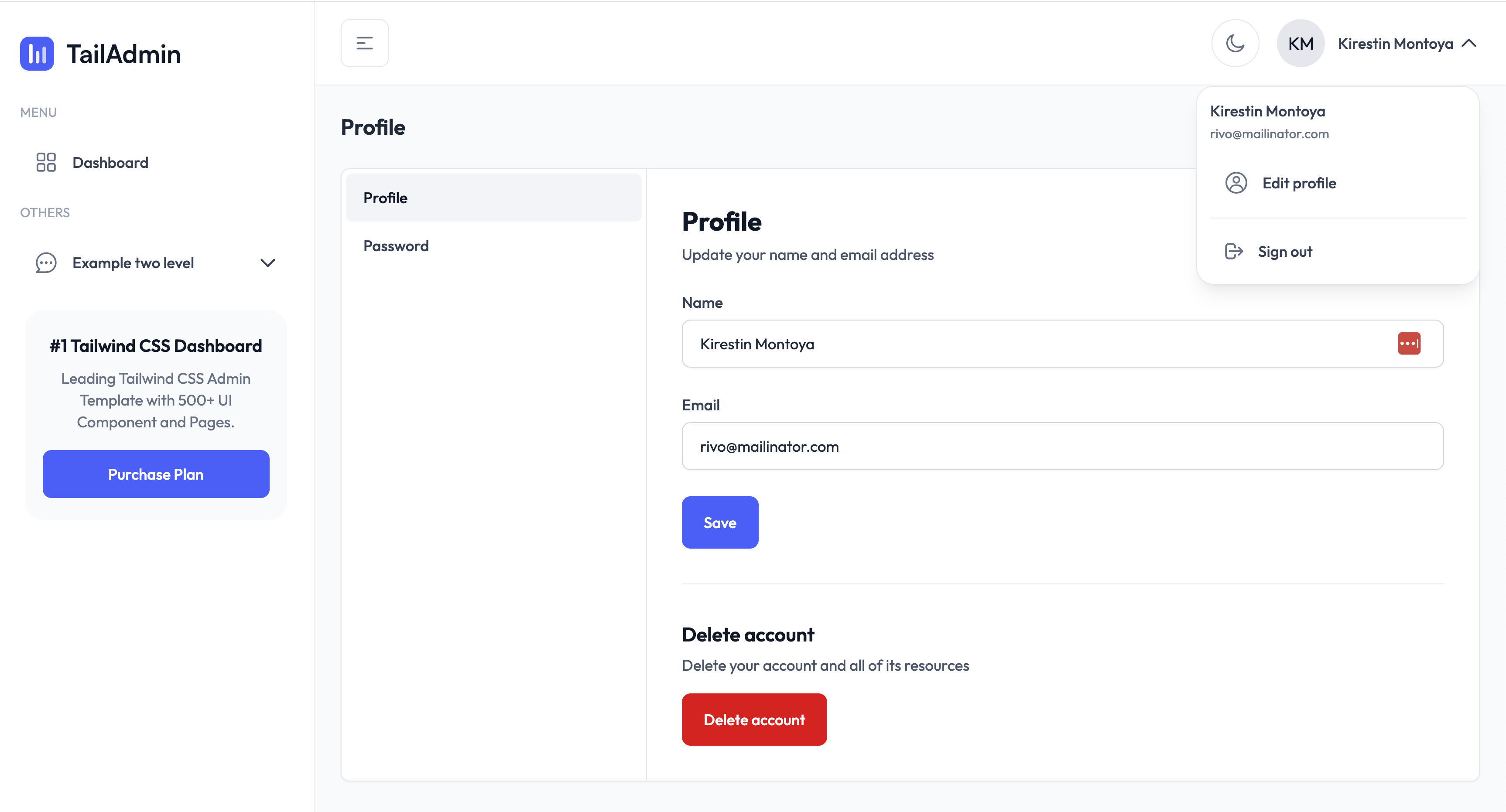 As a result, you get full simple Laravel Auth (login, register, forget password, profile), styled as TailAdmin.