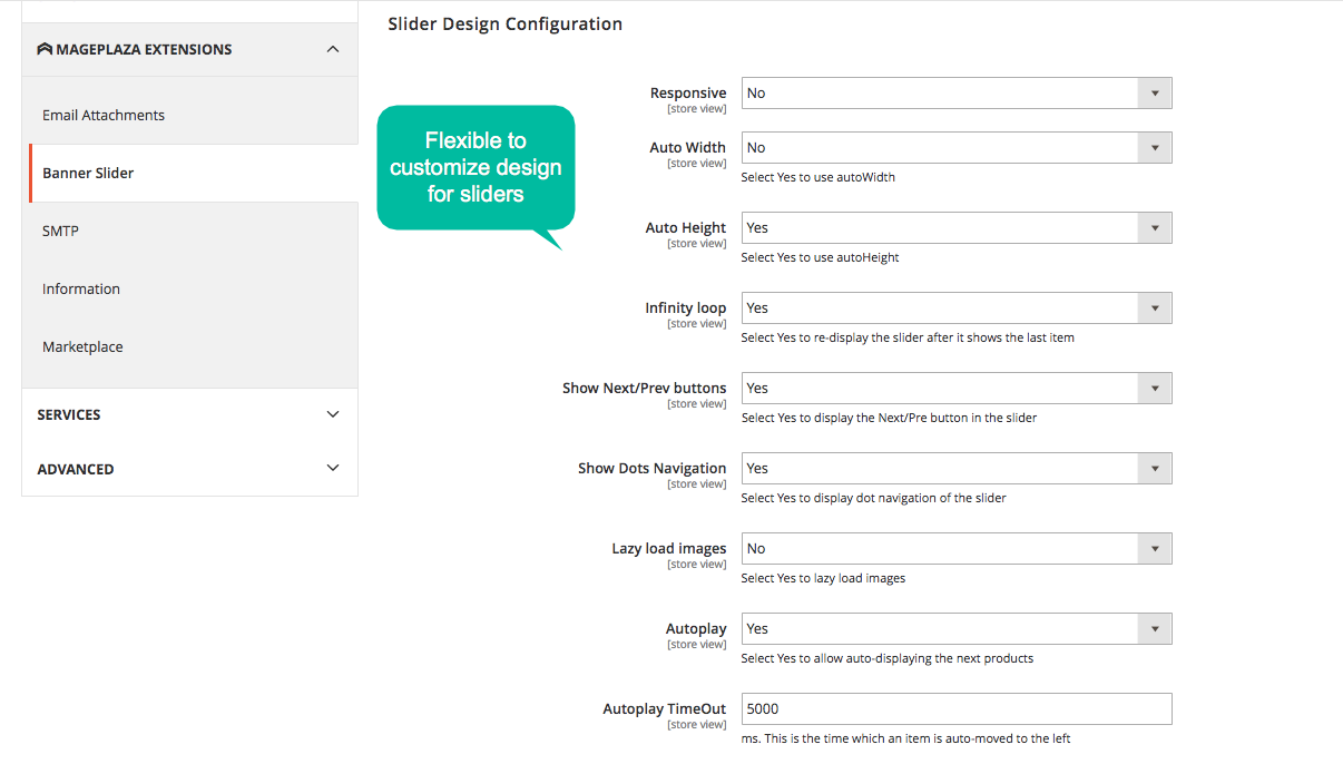 The store owner can swiftly design the banner sliders as their requirement. Besides the presentation effects, the extension also allows customizing various features of the slider such as:
