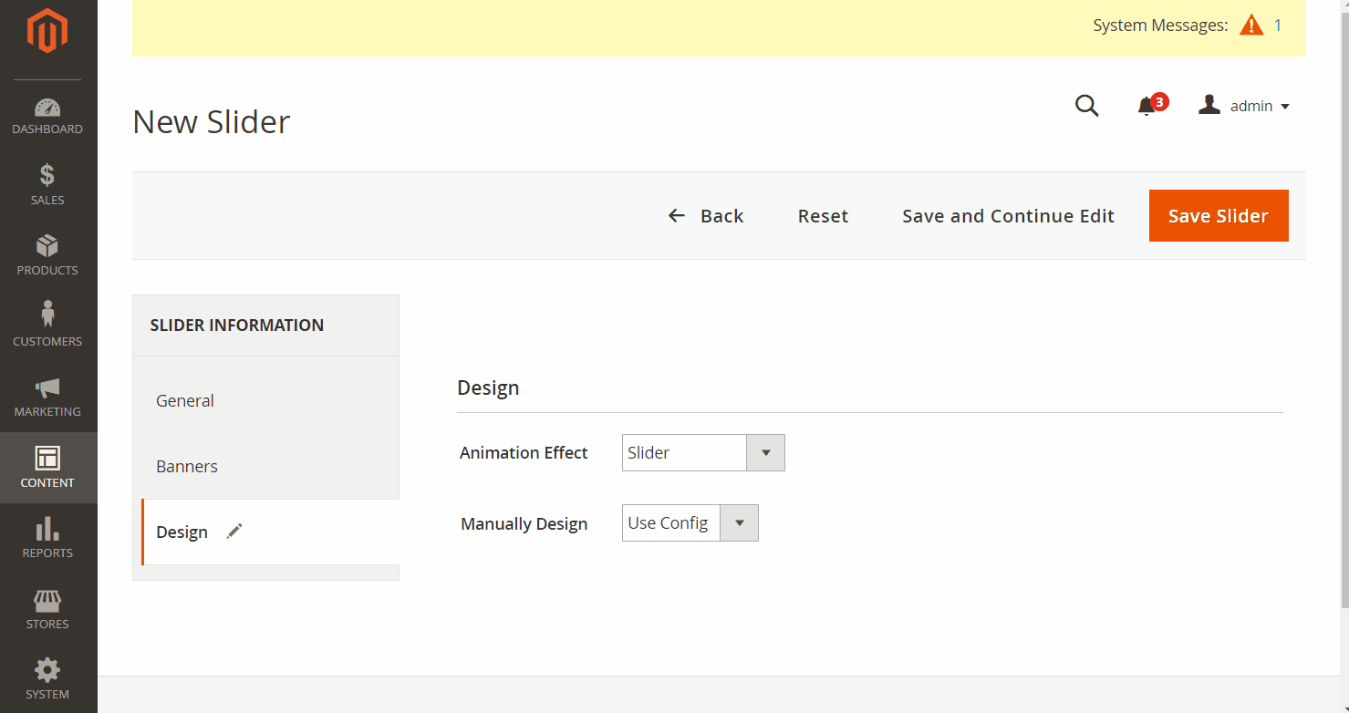 In the Admin Panel, navigate to Content > Banner Sliders > Manage Slider, in the right side, click on Add New button.