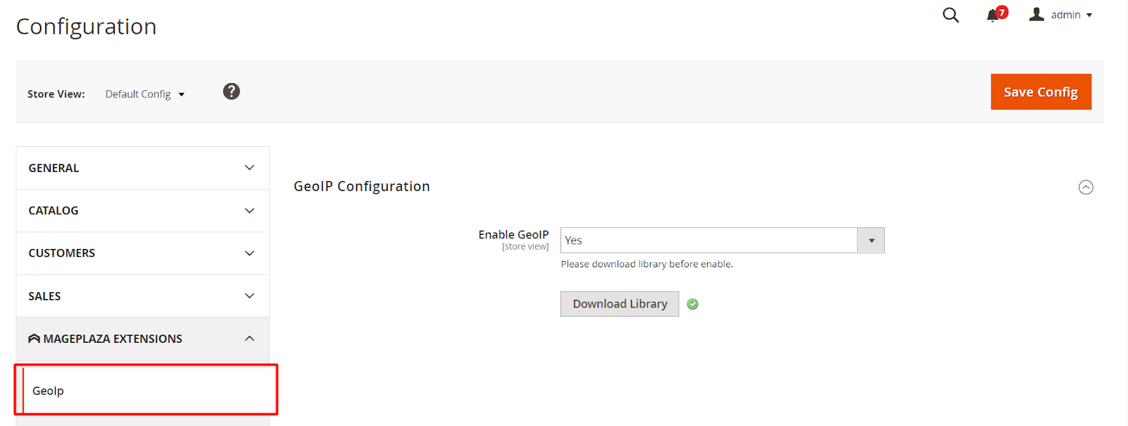 From the Admin Panel, go to Stores > Configuration > Mageplaza Extension > Geo IP, choose Geo IP Configuration section.