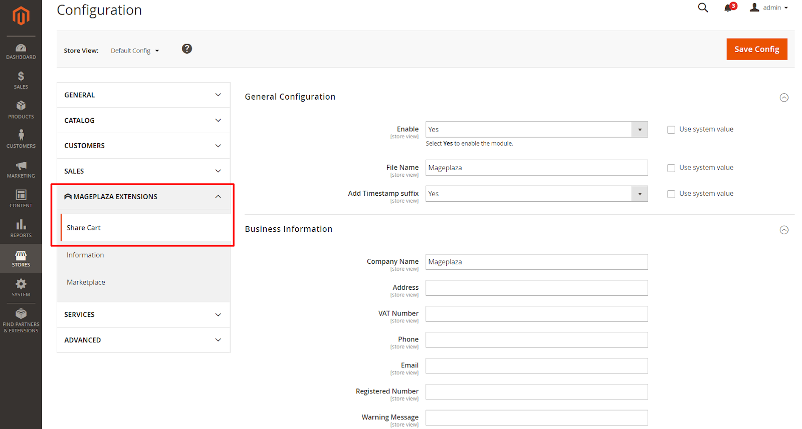 Mageplaza Extensions > Share Cart > Configuration, go toGeneral Configurationsection.