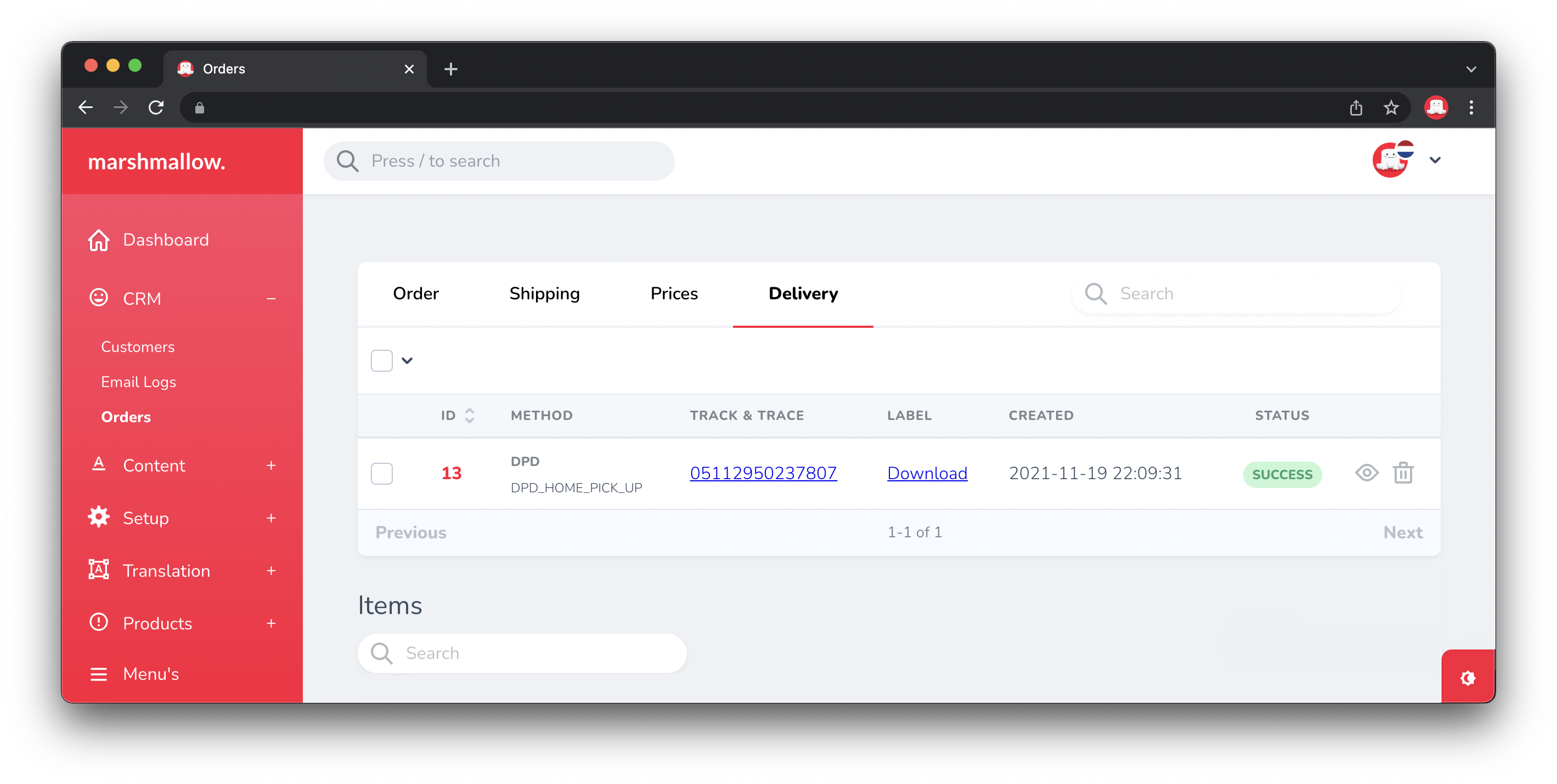 We have created a helper that allows you to add the Track & Trace number and a download button to download the shipping label to the index of your resource.