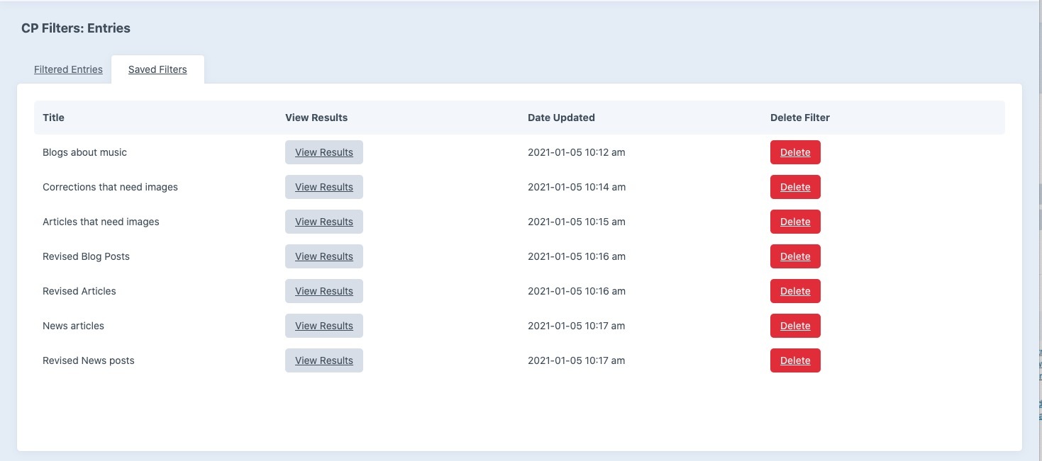 Saved Filters