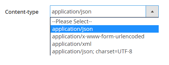 Content-type: Select the content type to send the data. For Method GET you can leave this field blank.
