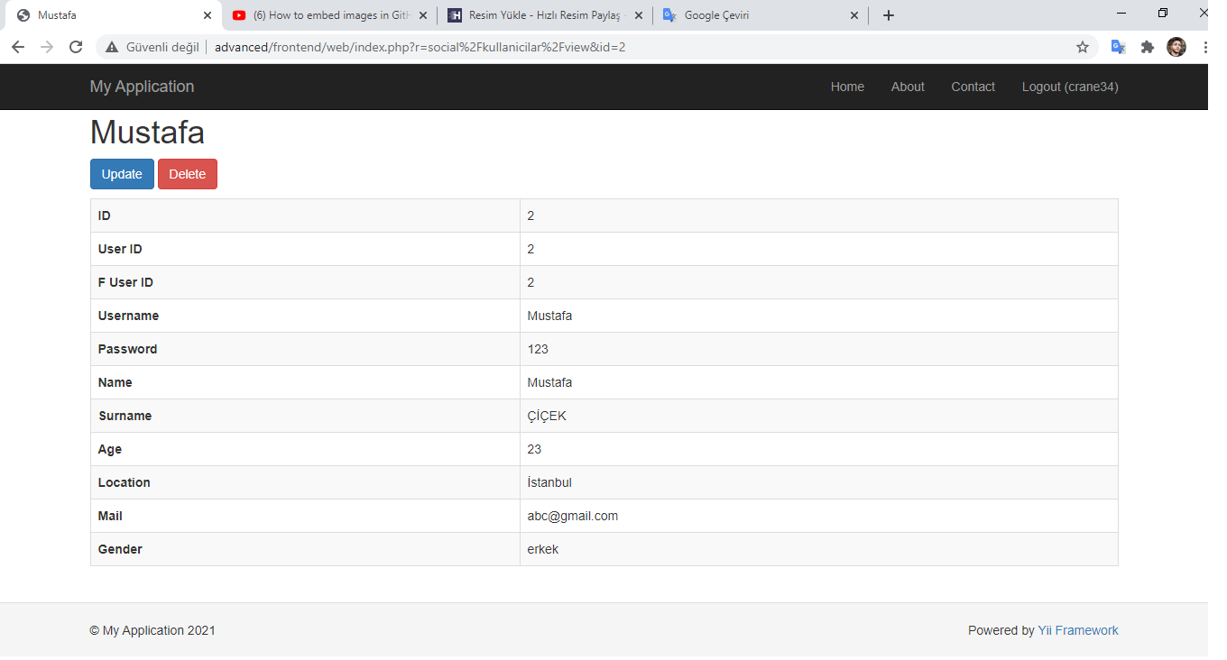 Kullanıcı => http://advanced/frontend/web/index.php?r=social%2Fkullanicilar%2Fview&id=2