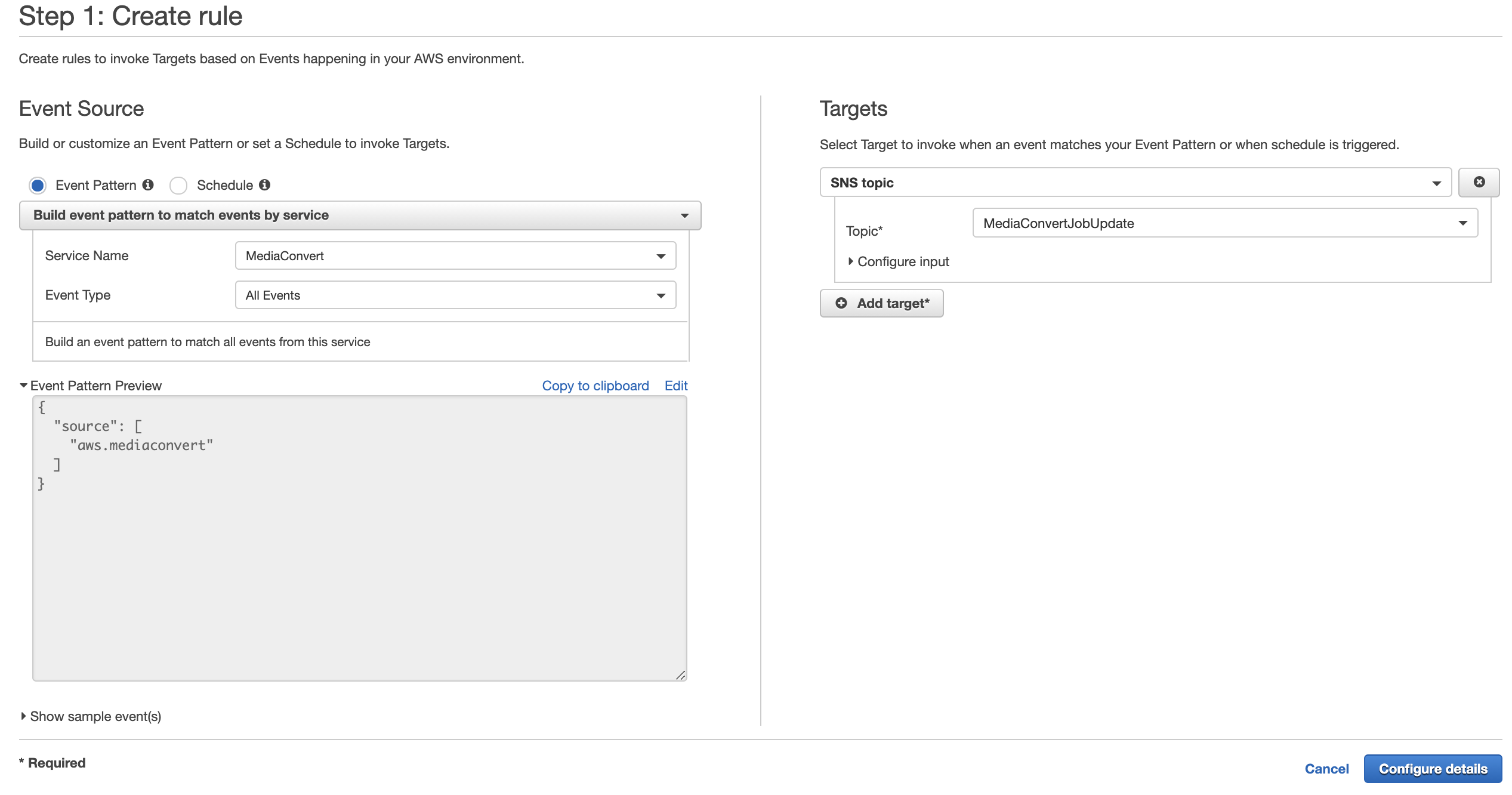 Please note, this is only optional, and you should only enable this if you want to track the MediaConvert job's progressions.