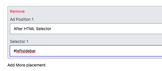 You can choose to auto place at the ads at the desired locations on the website by providing the CSS selector where you are looking to place the ad and choosing the position (Before selector, After selector, inside selector etc. to place the ad)
