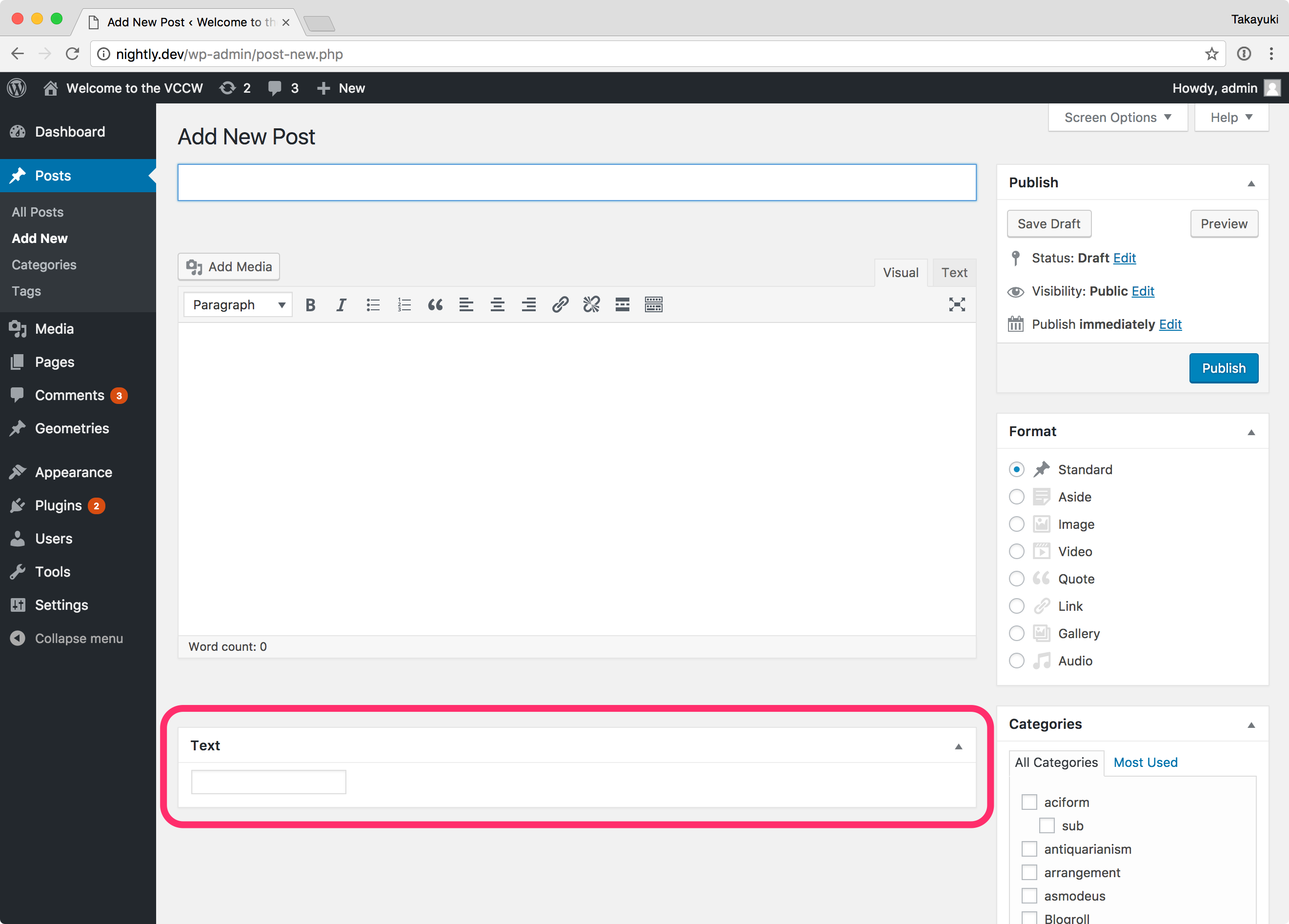 $text_field->add( 'post' );