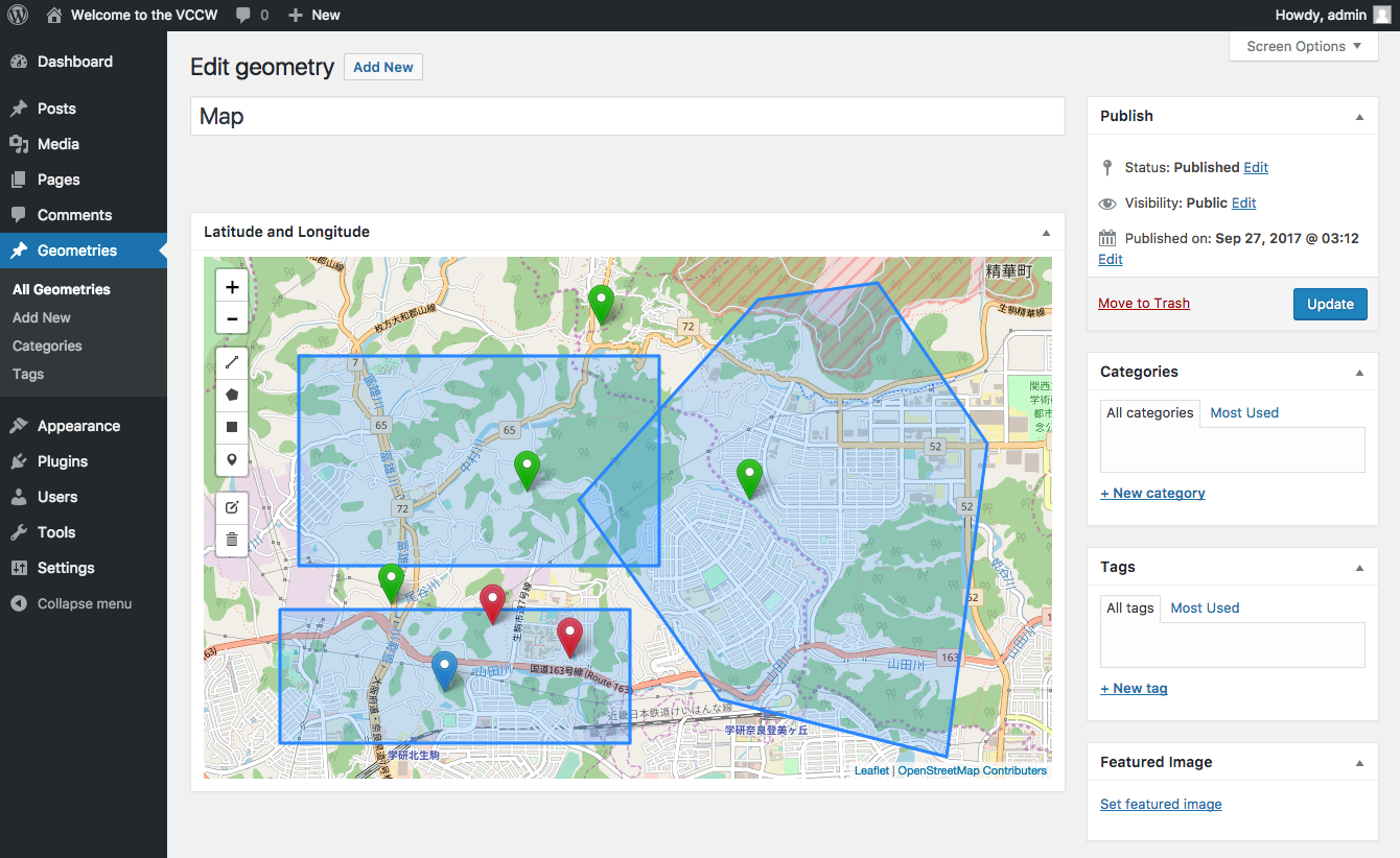 Add a custom field to save geometries to the edit screen of the specific post type for WordPress.