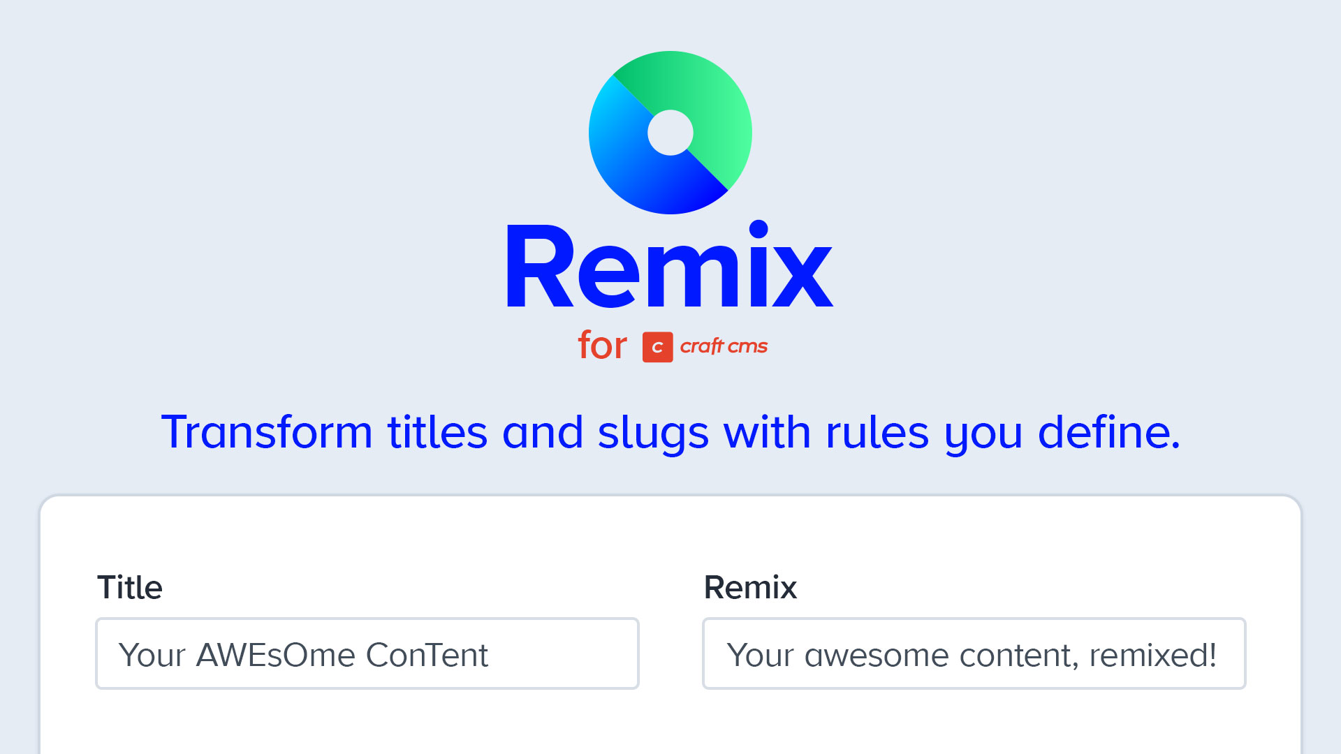A Craft CMS plugin. The Remix field outputs the transformed value of your title or slug based on rules you define.