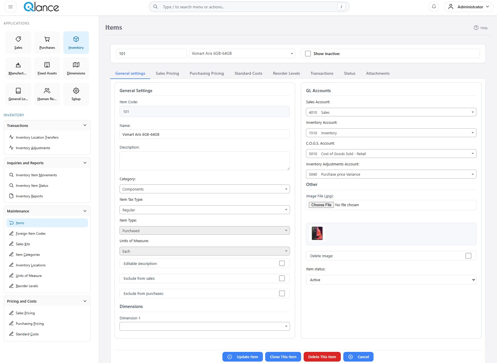 - Item Categories, Units of Measure, Reorder Levels