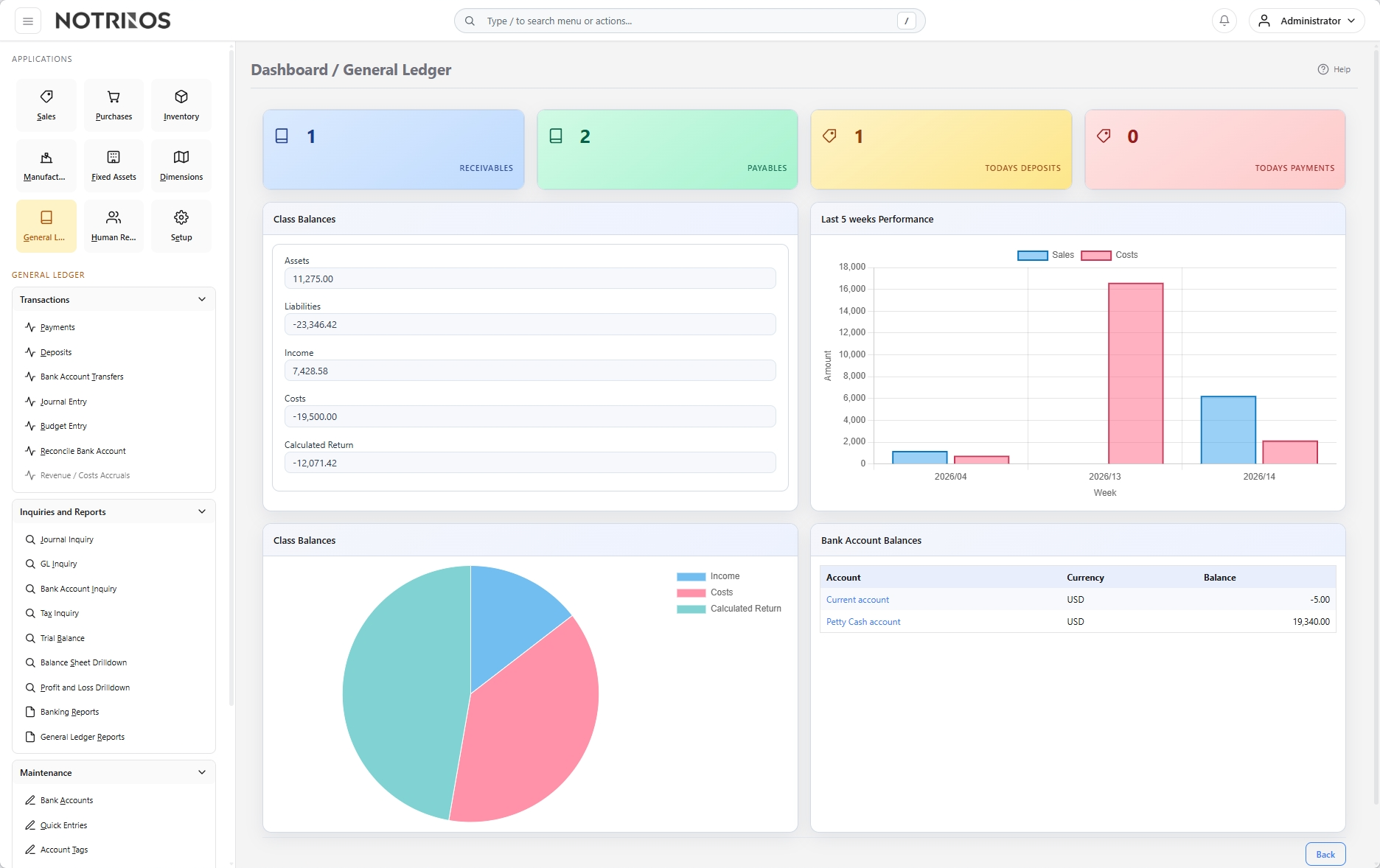 - Drilldown: Trial Balance, Balance Sheet, Profit & Loss