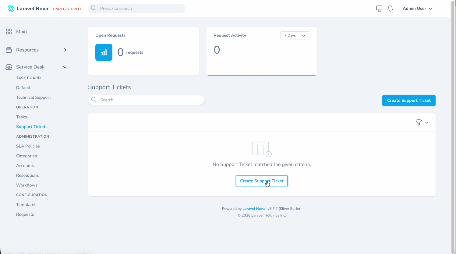Resolve customer requests on time, every time. Service Desk for Laravel Nova gives you a complete ticketing pipeline β€” intake forms, SLA-driven prioritization, custom workflows with stage guards and a drag-and-drop Kanban board β€” so your team stays focused on the right work and nothing falls through the cracks.