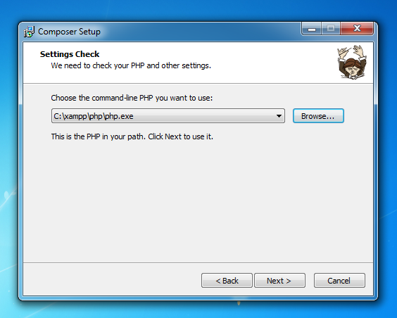 directory. Note that you have to point at the php.exe