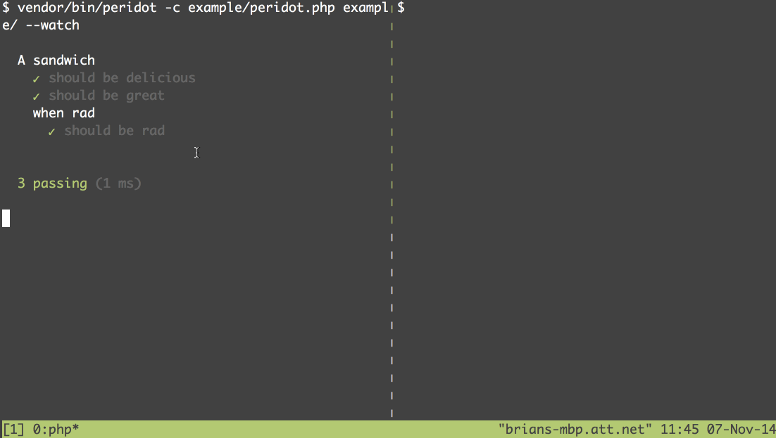 $ vendor/bin/peridot specs/