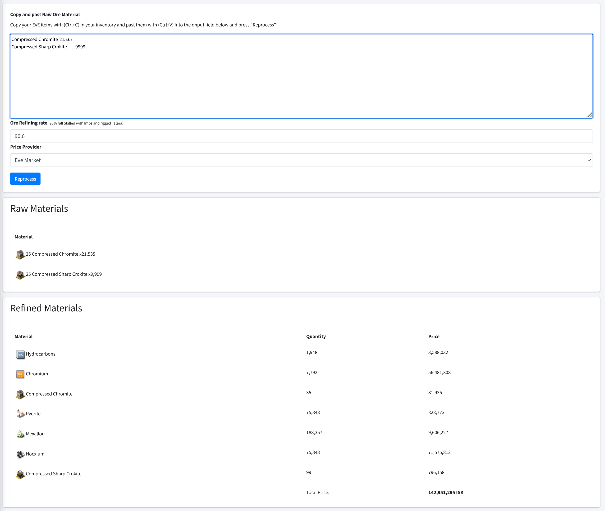 All other settings such as tax rate can be set as desired. For best tax result, u should set "Ore Valuation Price" to "Mineral Price". The Prices for minerals are inaccurate.