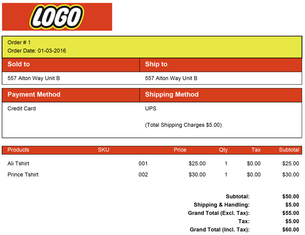 use Quickshiftin\Pdf\Invoice\Invoice as PdfInvoice; use Quickshiftin\Pdf\Invoice\Factory as InvoiceFactory; $oInvoiceFactory = new InvoiceFactory(); $oInvoicePdf = new PdfInvoice(); // Configure fonts - just put ttf font files somewhere your project can access them $oInvoicePdf->setRegularFontPath(__DIR__ . '/../assets/Arial.ttf'); $oInvoicePdf->setBoldFontPath(__DIR__ . '/../assets/Arial Bold.ttf'); $oInvoicePdf->setItalicFontPath(__DIR__ . '/../assets/Arial Italic.ttf'); // Set Colors $red = '#d53f27'; $yellow = '#e8e653'; // Title section of invoice // Background color for title section of invoice, the default is white $oInvoicePdf->setTitleBgFillColor($oInvoiceFactory->createColorHtml($yellow)); $oInvoicePdf->setTitleFontColor($oInvoiceFactory->createColorHtml('black')); // Header sections of invoice $oInvoicePdf->setHeaderBgFillColor($oInvoiceFactory->createColorHtml($red)); $oInvoicePdf->setBodyHeaderFontColor($oInvoiceFactory->createColorHtml('white')); // Body section of invoice $oInvoicePdf->setBodyFontColor($oInvoiceFactory->createColorHtml('black')); // Line color of invoice $oInvoicePdf->setLineColor($oInvoiceFactory->createColorGrayscale(0)); // Configure logo $oInvoicePdf->setLogoPath(__DIR__ . '/../assets/fake-logo.jpg'); // Build the PDF // $oPdf is an instance of Zend_Pdf $oPdf = $oInvoicePdf->getPdf($myOrder); // A string rendition, you could echo this to the browser with headers to implement a download $pdf = $oPdf->render(); // You can also simply save it to a file file_put_contents('/tmp/test.pdf', $pdf);